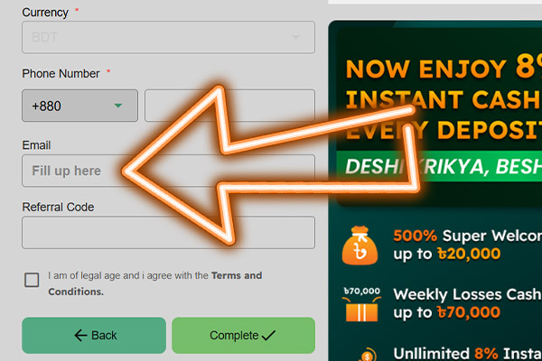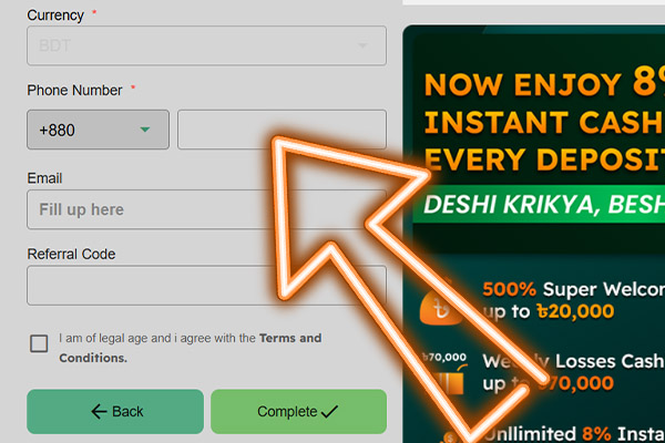 The default currency is BDT, so no need to select that. Simply enter your mobile number